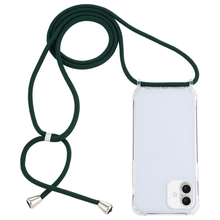 Funda Protectora para Teléfono iPhone 16 Plus Airbag Acrílico Transparente con Cordón (Verde Oscuro)