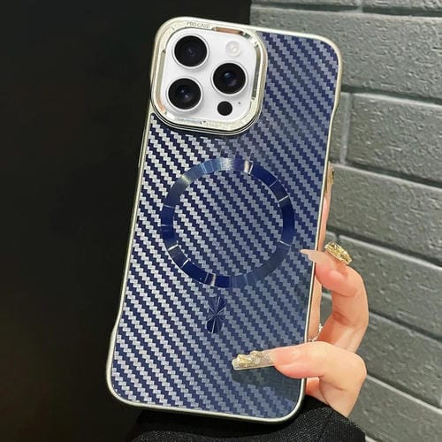 Funda para Teléfono Magsafe Fibra de Carbono Ag para iPhone 16 Pro Max (Azul)