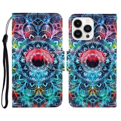 Funda de Cuero con Tapa para iPhone 16 Pro Dibujo en Color 3D (Mandala)