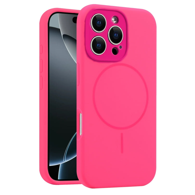 Funda de Silicona Líquida para iPhone 16 Pro Magsafe con Orificios Finos (Rosa y Rojo)