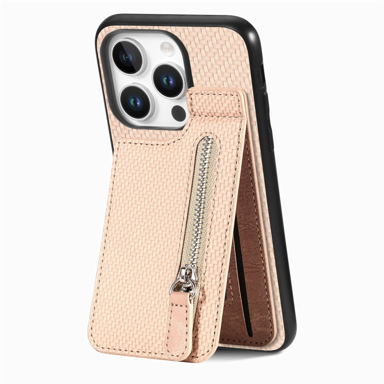 Funda Tipo Billetera con Cremallera y Tapa Horizontal Fibra de Carbono para iPhone 16 Pro (MarrĂłn)