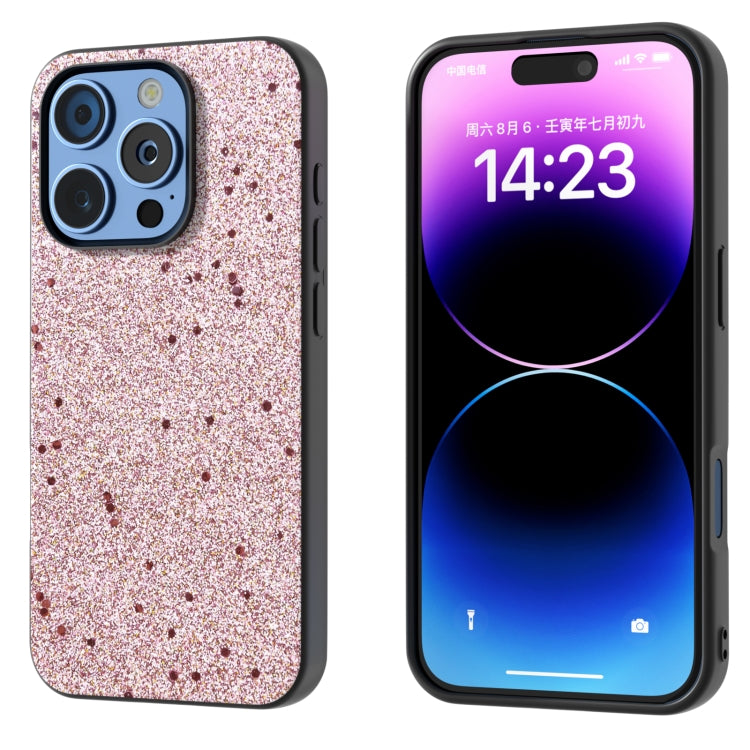 Funda para iPhone 16 Pro con Marco Negro y Purpurina a Prueba de Golpes (Dorado y Rosa)