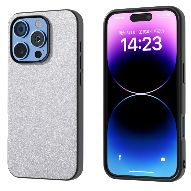 Funda para iPhone 16 Pro con Marco Negro y Purpurina a Prueba de Golpes (Plateada)
