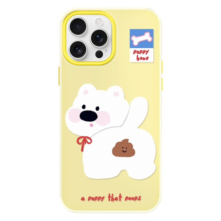 Funda hĂbrida TPU y Policarbonato iPhone 16 Pro Cachorro Haciendo Caca (Amarillo)