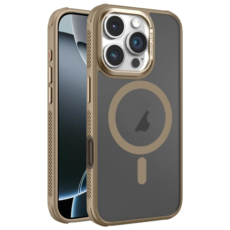 Estuche para Teléfono Magsafe iPhone 16 Pro Marco Metal Esmerilado Piel Enfriamiento (Dorado)