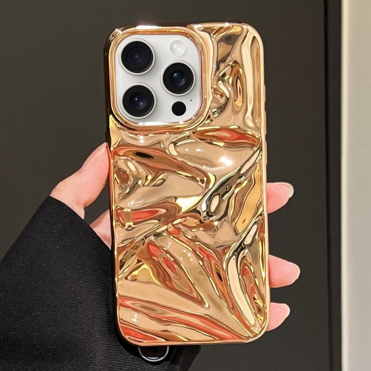 Funda TPU con Pintura Galvanizada con Ondas de Agua para iPhone 16 Pro (Dorado Brillante)