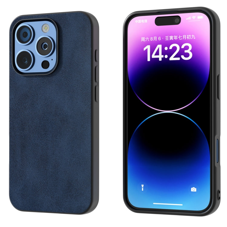 Funda de Teléfono PU Textura Becerro Dos Colores Marco Negro para iPhone 16 Pro (Azul)