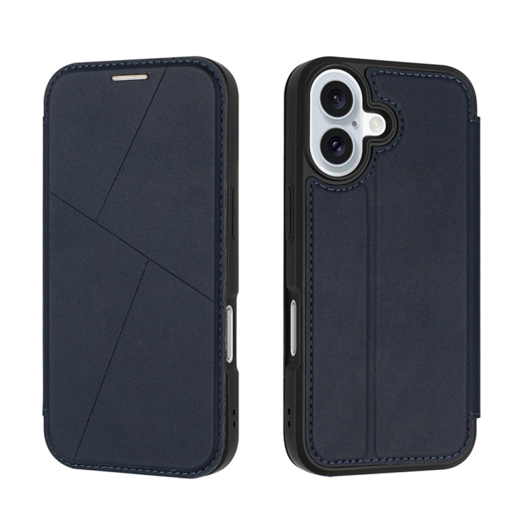 Funda de Piel con Tapa Magnética Textura de Piel de Becerro Azns para iPhone 16 (Azul Oscuro)