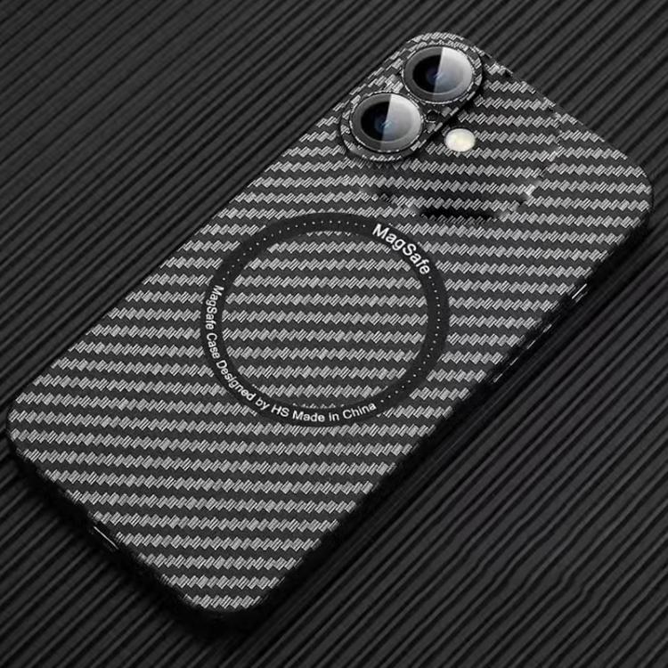 Funda para iPhone 16 Fibra de Carbono con Imán Magsafe para PC y Película para Lentes (Blanco Plateado)