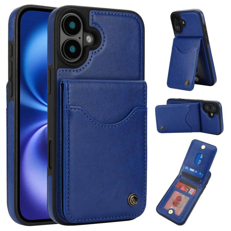 Funda de Cuero con Tapa Vertical para iPhone 16 Tarjetero (Azul Oscuro)