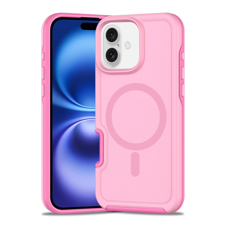 Funda híbrida TPU y PC iPhone 16 Protección Magsafe Prueba de Golpes (Rosa Claro y Rojo Coral)
