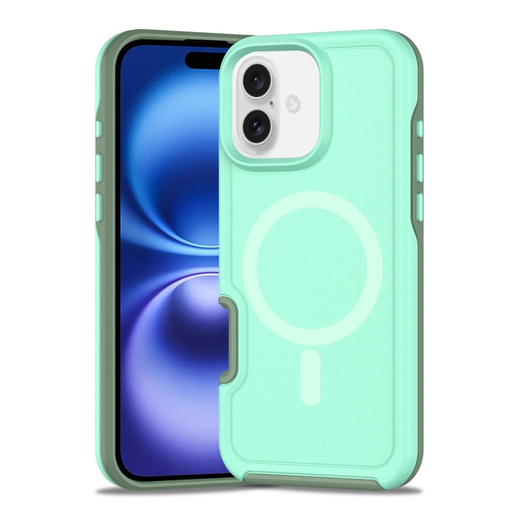Funda híbrida TPU y PC iPhone 16 Protección Magsafe Prueba de golpes (Verde Menta y Verde Grisáceo)
