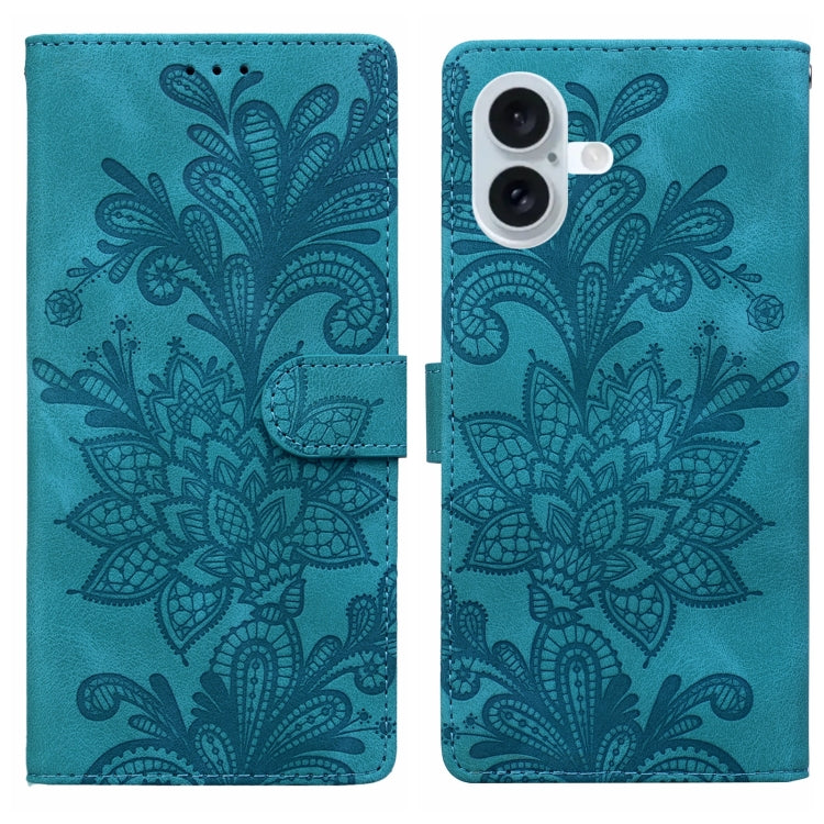 Funda de Cuero para iPhone 16 con Hebilla Magnética y Diseño Floral En Relieve (Azul)