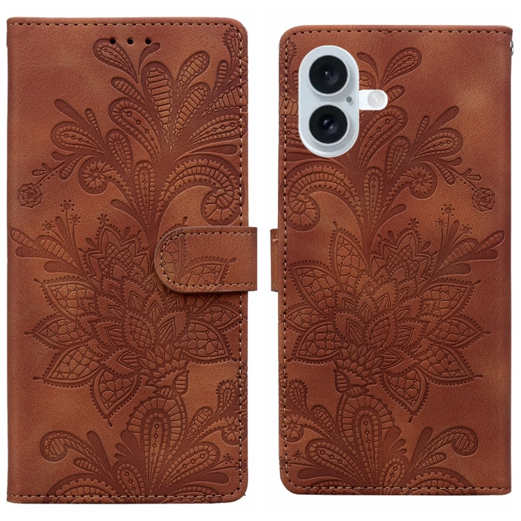 Funda de Cuero para iPhone 16 con Hebilla Magnética y Diseño Floral en Relieve (Marrón)