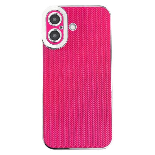 Funda de Teléfono TPU con Textura Granulada y Borde Plateado Galvanizado para iPhone 16 (Rojo Rosa)