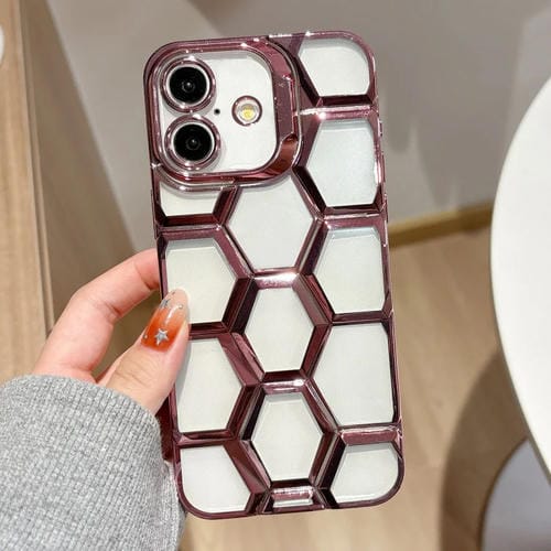 Funda para iPhone 16 Grabado Láser Galvanoplastia Diseño Panal 3D (Oro Rosa)