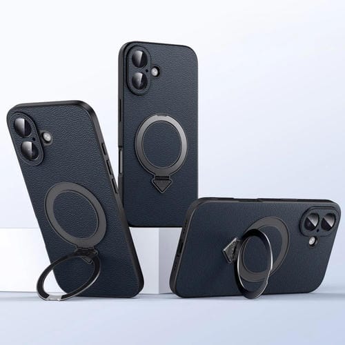 Funda para Teléfono Sulada iPhone 16 Soporte Magnético Magsafe Cuero de Grano Superior (Azul)