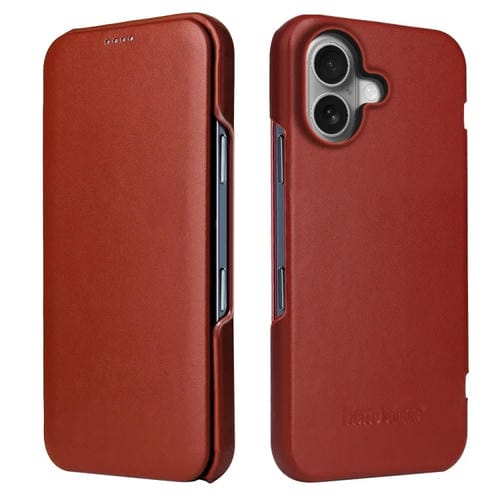 Funda de Cuero con Tapa Magnética Fierre Shann para iPhone 16 (Marrón)