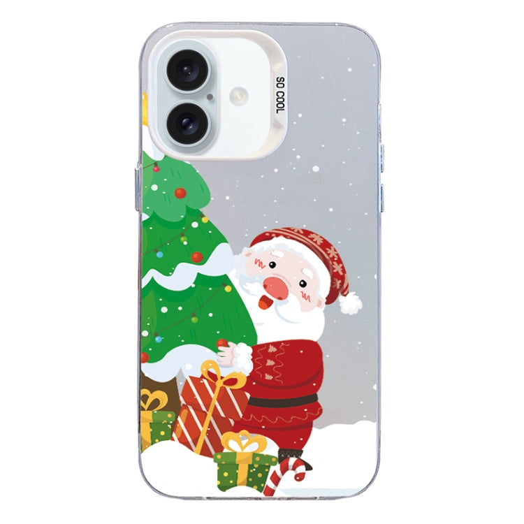 Funda para teléfono PC iPhone 16 patrón cobertura total serie navideña (Blanco)