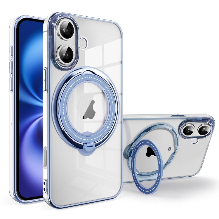 Funda para iPhone 16 Soporte Giratorio 360 Grados Galvanoplastia Magsafe Prueba de Golpes (Azul)
