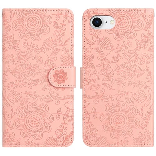 Funda de Cuero con Estampado Floral En Relieve para iPhone 16E (Rosa)