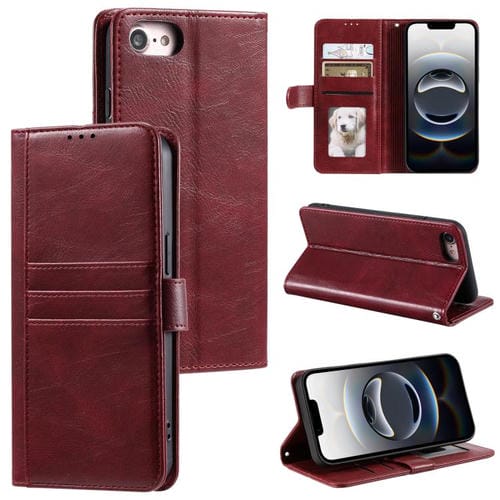 Funda de Cuero para Teléfono con Billetera para iPhone 16E Capacidad 6 Tarjetas (Rojo Vino)