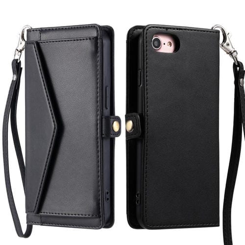 Funda de Cuero para iPhone 16E con Ranura para Tarjetas y Cordón (Negro)