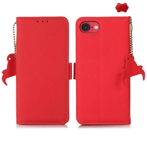 Funda para Teléfono RFID de Cuero Genuino Tj con Imán Lateral para iPhone 16E (Rojo)