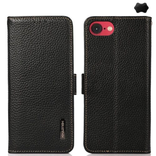 Funda Rfid Cuero Genuino Khazneh para iPhone 16E con Imán Lateral (Negro)