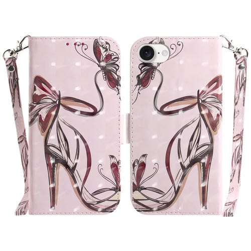 Funda de Cuero con Tapa Horizontal para iPhone 16E (Mariposa de Tacón Alto)