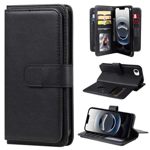 Funda de Cuero con Cremallera para iPhone 16E con 9 Ranuras para Tarjetas (Negro)