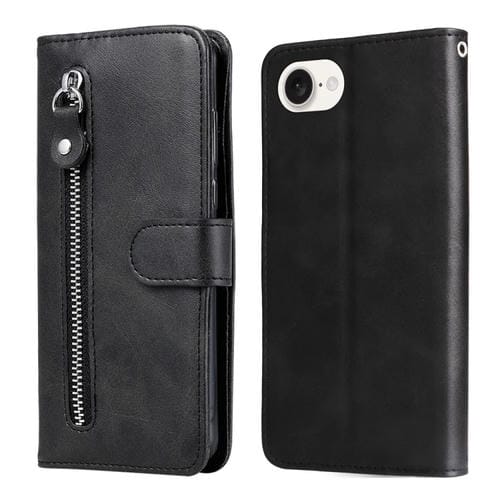 Funda para Teléfono iPhone SE 2022 Cuero con Cremallera y Textura de Becerro (Negro)