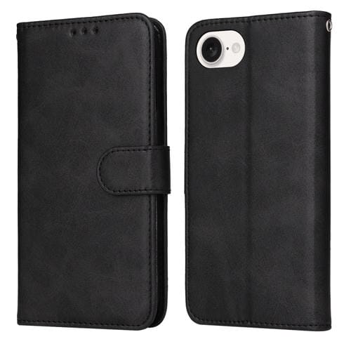 Funda para Teléfono iPhone SE 2024 Cuero con Tapa Textura Becerro (Negro)