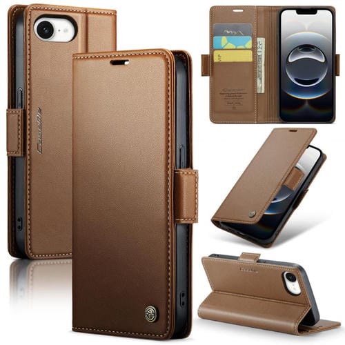 Funda para iPhone 16E Caseme 023 con Hebilla de Mariposa Textura de Lichi Antirrobo Rfid (Marrón)