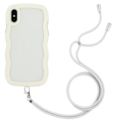 For iPhone X/XS Lanyard Candy Color Wave TPU Clear PC Phone Case(White)