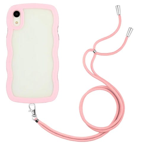 For iPhone XR Lanyard Candy Color Wave TPU Clear PC Phone Case(Pink)
