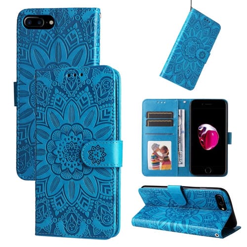 Funda de Teléfono Cuero con Estampado de Girasol En Relieve para iPhone 7 Plus / 8 Plus (Azul)