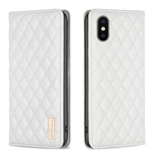 For iPhone XS/X Diamond Lattice Magnetic Leather Flip Phone Case (White)