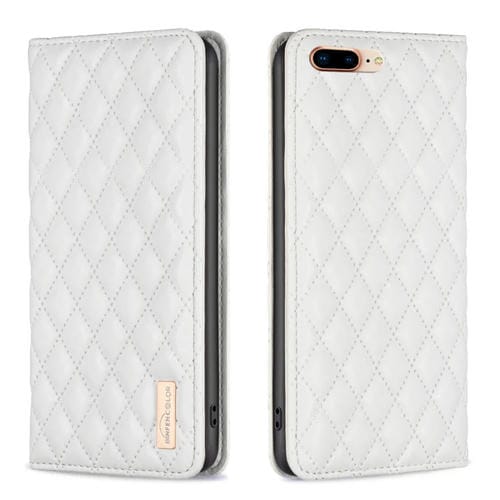 For iPhone 8 Plus / 7 Plus Diamond Lattice Magnetic Leather Flip Phone Case (White)