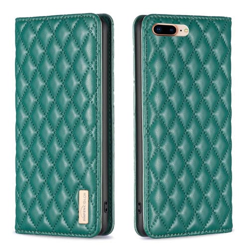 For iPhone 8 Plus / 7 Plus Diamond Lattice Magnetic Leather Flip Phone Case (Green)