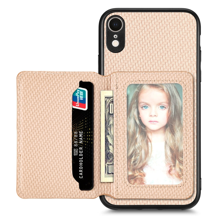 Funda para Teléfono Fibra de Carbono iPhone Xr con Bolsa de Tarjeta Magnética (Caqui)
