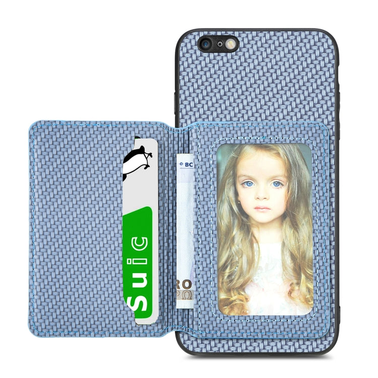Caja de Teléfono para iPhone 6 Plus 6S Plus con Bolsa de Tarjeta Magnética Fibra de Carbono (Azul)