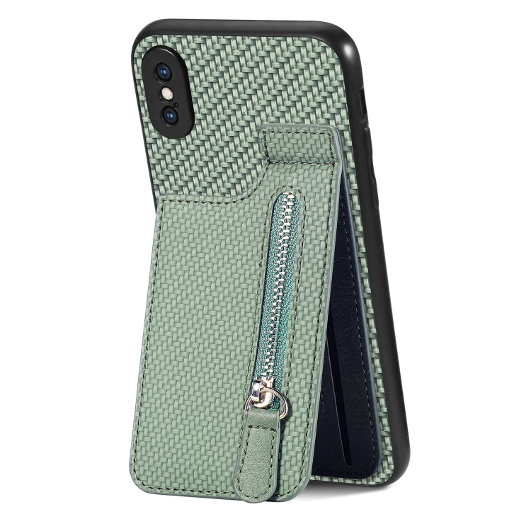Estuche para Teléfono iPhone X / Xs con Billetera Cremallera Horizontal Fibra de Carbono (Verde)