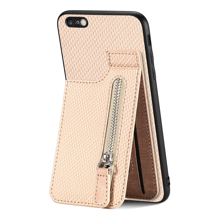 Funda de Teléfono para iPhone 6 / 6S Fibra de Carbono con Cremallera Vertical (Caqui)