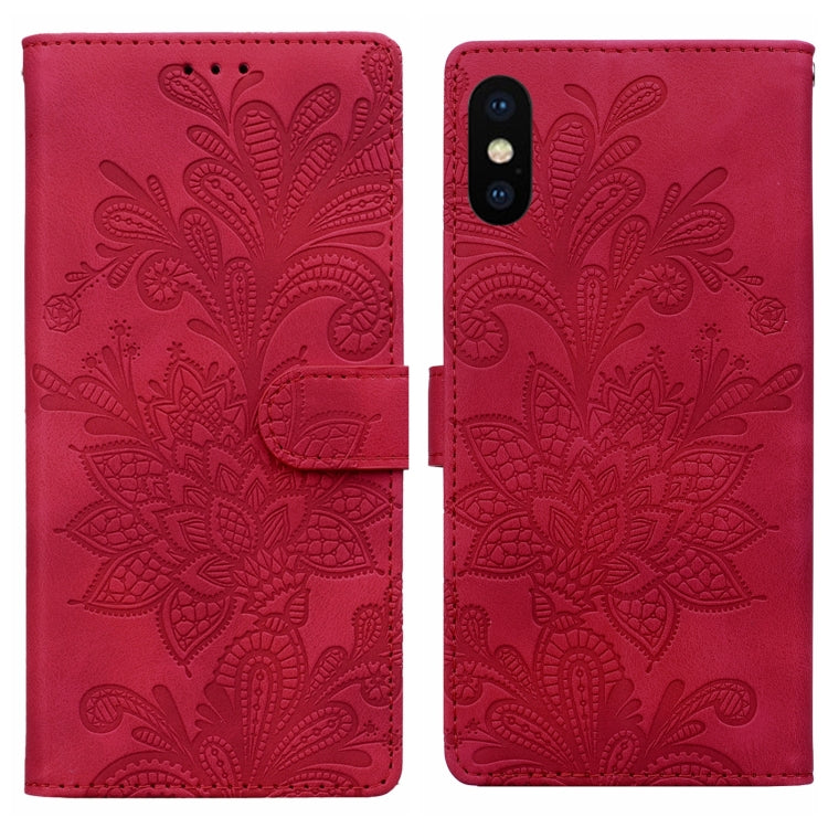 Funda de Cuero con Hebilla Magnética y Encaje Floral para iPhone Xs Max (Rojo)