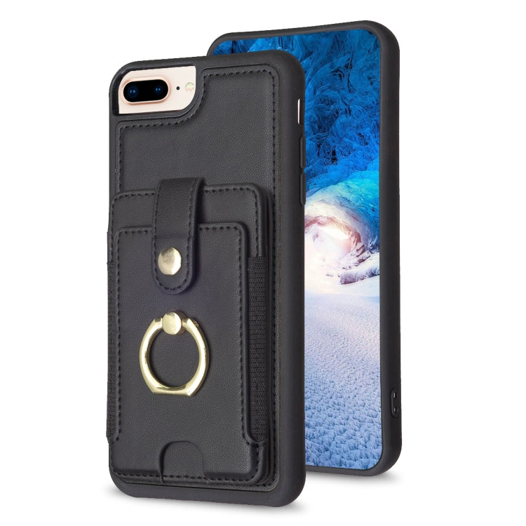 Funda para Teléfono Bf27 iPhone 8 Plus y 7 Plus con Soporte para Tarjeta y Anillo de Metal (Negro)