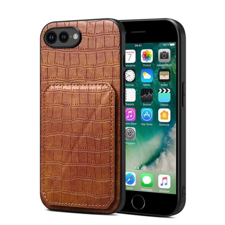 Funda Trasera para iPhone 8 Plus/7 Plus piel de cocodrilo de imitaciĂłn con soporte (MarrĂłn)