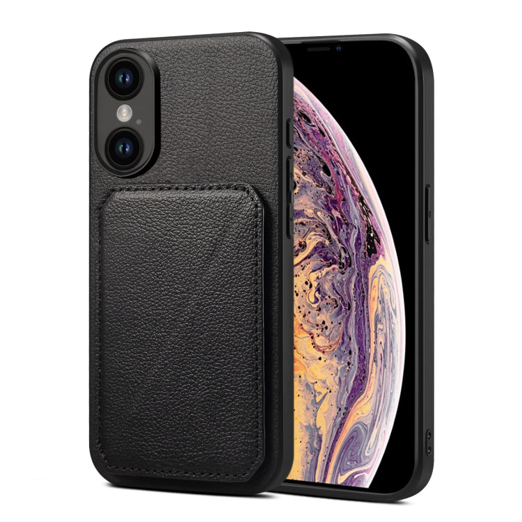 Funda Trasera para iPhone Xs Max de piel de becerro de imitaciĂłn con soporte (Negro)