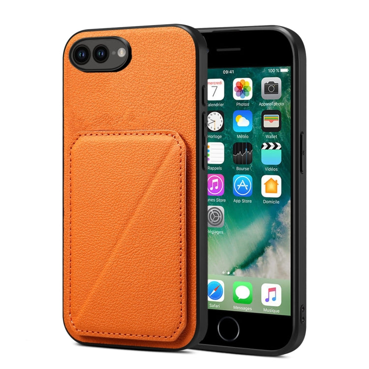 Funda Trasera para iPhone 8 Plus/7 Plus de Piel de Becerro de ImitaciĂłn con Soporte (Naranja)