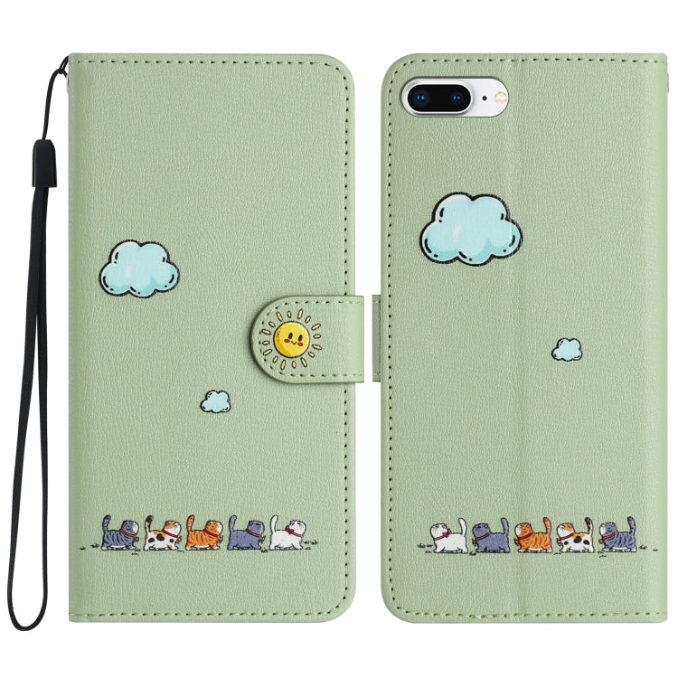 Funda para Teléfono iPhone 8 Plus/7 Plus Cuero Gatos Dibujos Animados (Verde)